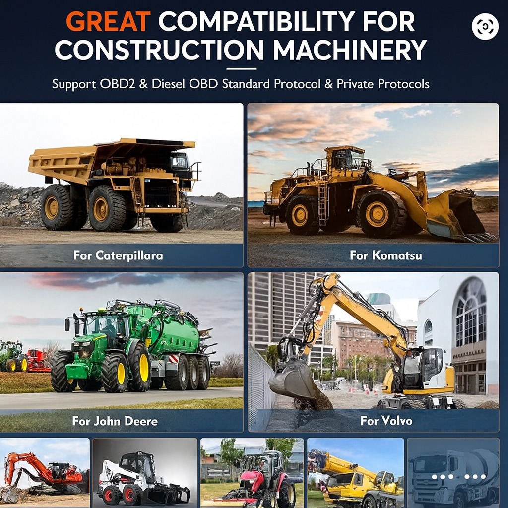 Can it diagnose construction equipment without a standard OBD connector?