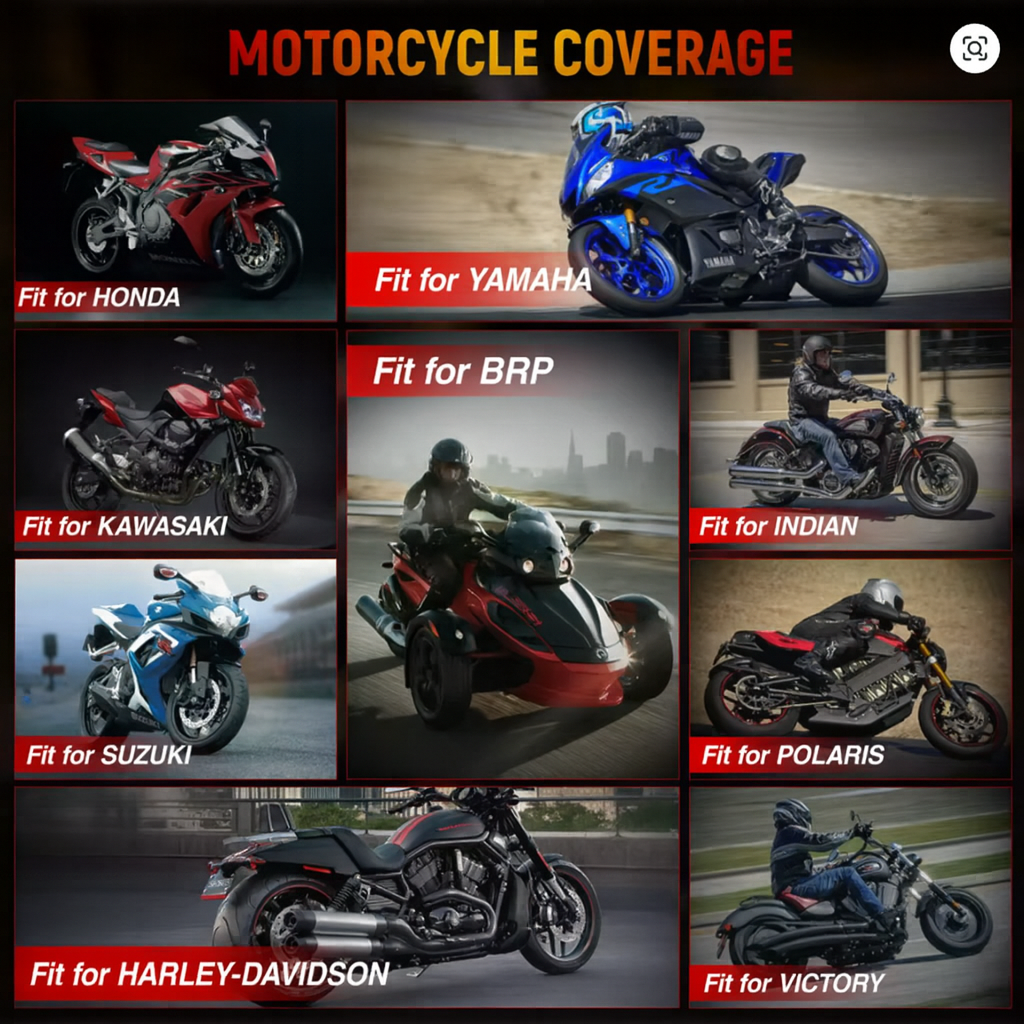 Perfect coverage for BMW, Ducati, Triumph, KTM, Honda, Yamaha, Suzuki, Kawasaki and more.