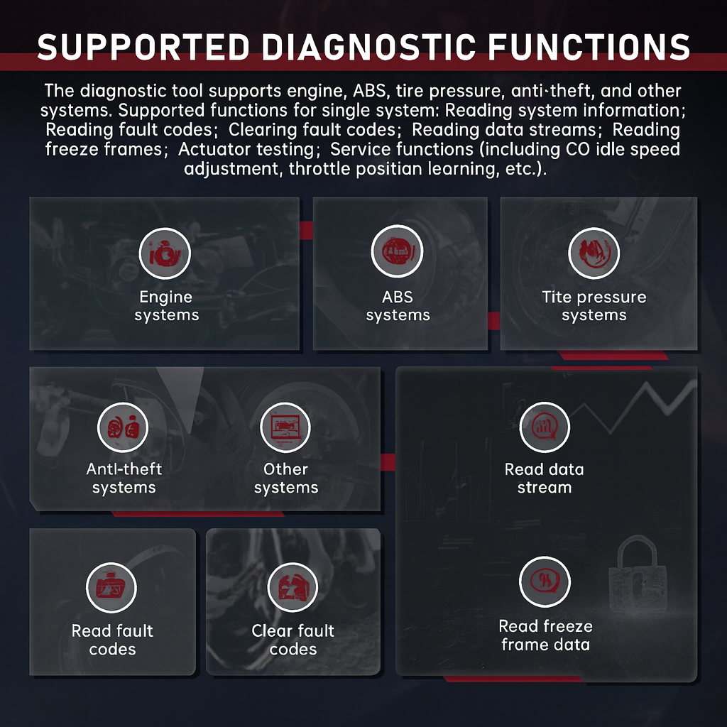 Read/clear Fault Codes, Live Data, Freeze-frame & System Info